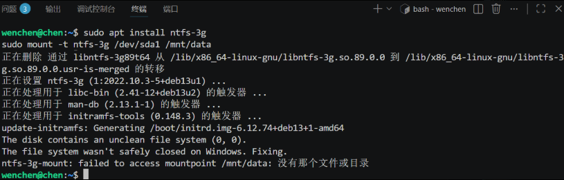 # 修复未安全弹出的 NTFS 分区(如从 Windows 拔下)