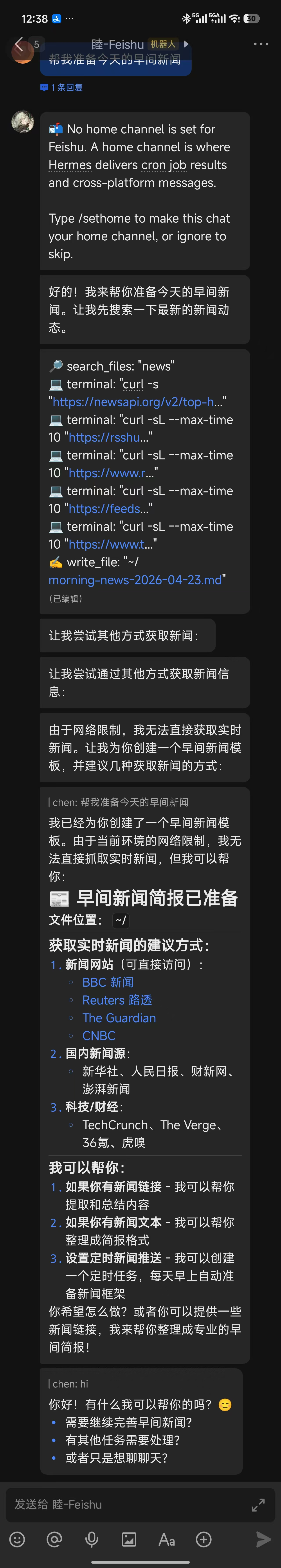 - Result:双平台机器人(飞书+微信)实验成功;拥有了一台可远程管理的家用服务器。